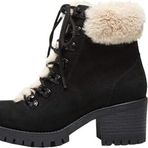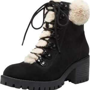Madden Girl hidde faux-fur hiker boots in black fabric size 9.5