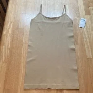 Decree Nude Stretch Cami Top. Longer Length, Spaghetti Straps Stretchy. 95% Nylon 5% Spandex.