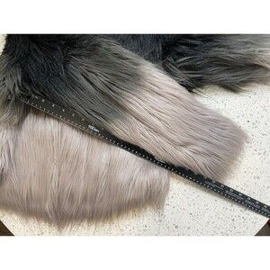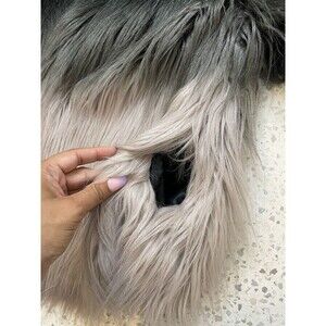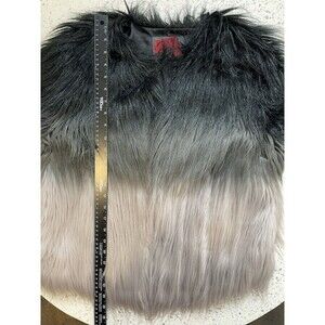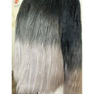 STUNNING Women XL Ombre Faux Fur Coat in Smoked Wool Black Grey Pockets Mob Wife