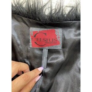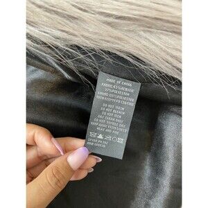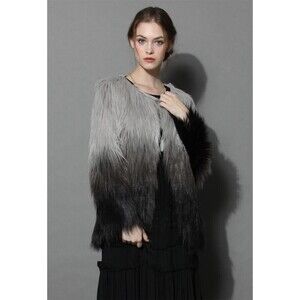 This is a stunning ombre gray and black faux fur coat made by Cliche'. The coat is made of smoke wool and is fully lined. The closure is a hook and eye, and it has pockets.