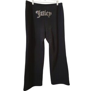 NWT! Juicy Couture Size L Knit Bling Flare Sweat Lounge Pants Black G15.7 Y2K