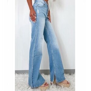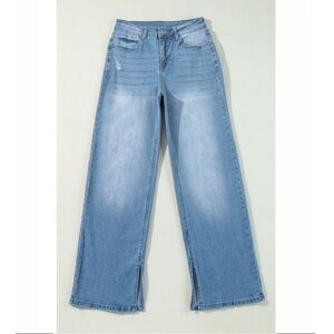 Light Blue High Rise Shift Slit Straight Leg Jeans