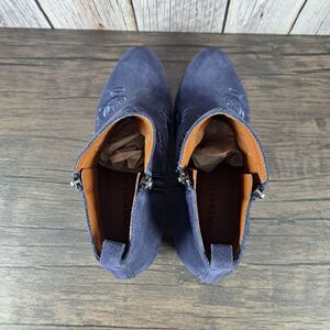 Lucky Brand Embroidered Basel Flowers Women's Sz 6.5 M Bootie Navy (VGC)