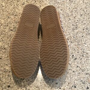 Size 5 Leopard Print TOMS Palma leather wrap slip ons in excellent condition. Stitching around sole, suede TOMs tag on heel with gusset slip on. Retail $90, no longer available on TOMS.