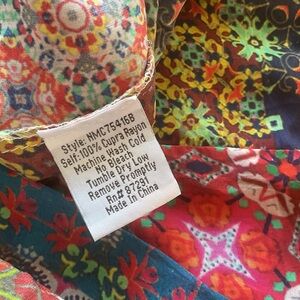 Super “silky” soft Rayon fabric with 🌸a beautiful array of vibrant colors bordering the neck, front openings,bottom hem…