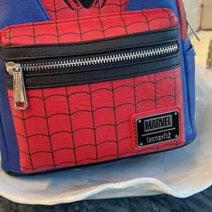 Stylish Spider-Man backpack by Loungefly. Features iconic web design. Perfect for fans.new without tag .