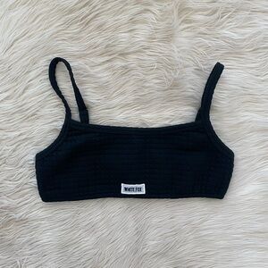 White Fox Black Keep It Going Crop Top Quilted Waffle Knit Thermal Logo Bralette