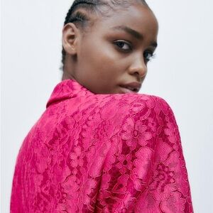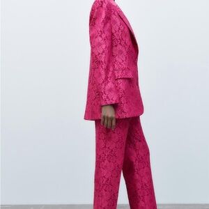 ZARA Tailored Lace Floral Blazer | Fuchsia | M