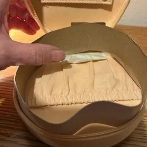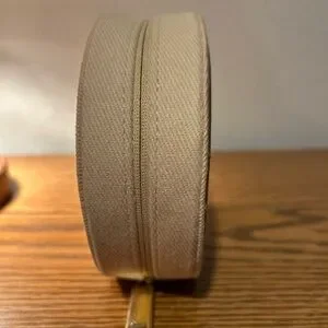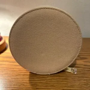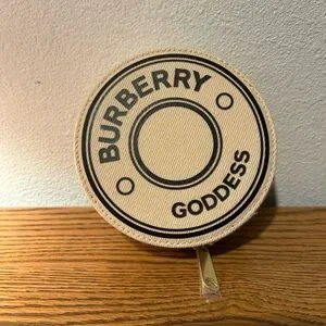 Bag is 5” round, cream colored, gold zipper with Burberry inscribed on it.Excellent condition, new without tags.