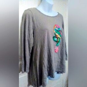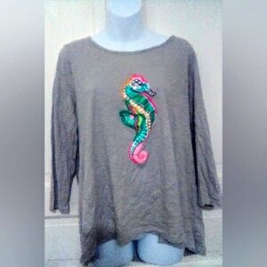 Super cute gray long sleeve shirt with seahorse design. Stretchy, comfortable and light fabric. it's perfect to wear when lounging around the house.