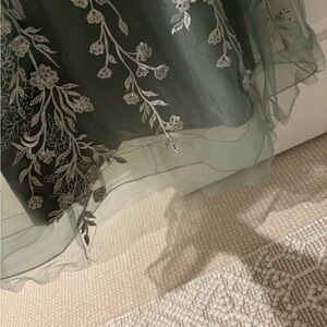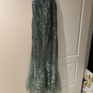 Professional images showcase the dress as a lighter blue but the dress has a deep sage/eucalyptus ombre color.