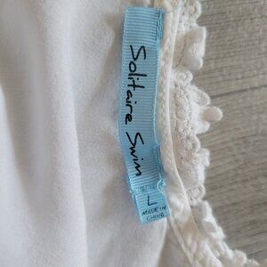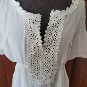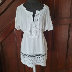 Solitaire Swim Women Large Shirt Dress White V-Neck Crochet Elastic Waist . 30" long. 18" armpit to armpit. Excellent condition.
