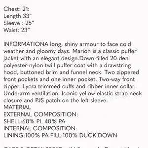 Please see pictures with description and measurements. See last picture with the patch, I believe the coat might have a rip underneath the patch, it’s on the inside of the coat and not visible. But coat is priced accordingly to this “flaw”