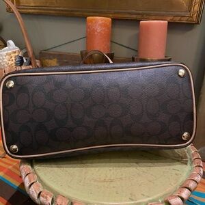 Coach Peyton Signature Domed Cora Satchel in Cora Brown Coated Canvas