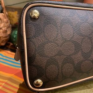 Coach Peyton Signature Domed Cora Satchel in Cora Brown Coated Canvas - F26184