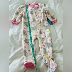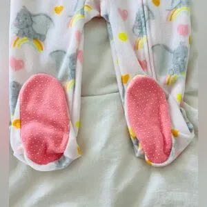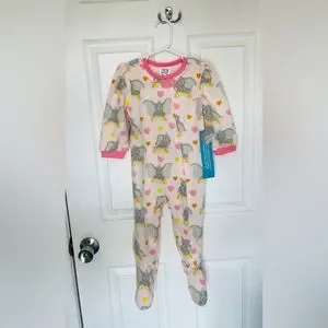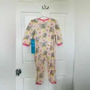 Adorable Disney Baby onesie fleece pajamas with dumbo print. Features pink cuffs and collar, zip up and footies. Perfect for cozy nights. Size is 18-24 months or 2T. Brand new with tags!