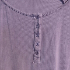 Add a touch of relaxed charm to your wardrobe with this ribbed Henley top. The long sleeves and lavender hue make it a versatile choice for casual days.