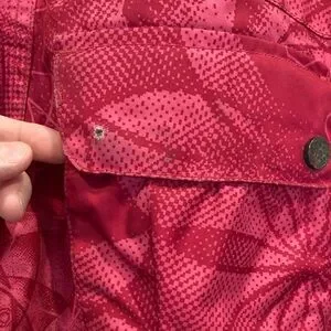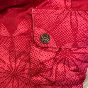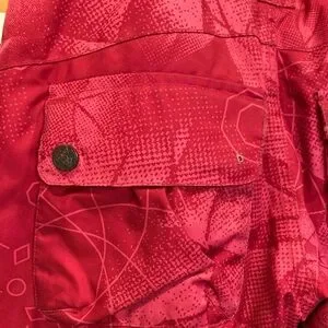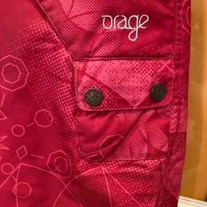 Orage dark pink snow board or ski pants, size 7 kids, GUC. These pants are great, super warm, super cute. See the pockets for signs of wear, particularly the two back pockets, which are each missing a decorative button. The button has no functionality, purely ornamental.
