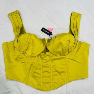 PRETTYLITTLETHING |WOMENS PLUS OLIVE TEXTURED SATIN BONING DETAIL CORSET NWT