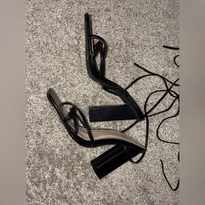 Black Lace Up Block Heels