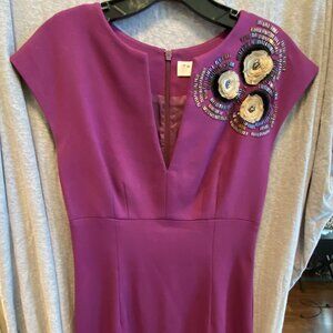 Trina Turk Women Floral Midi Dress Size 4 V Neck Shift Office