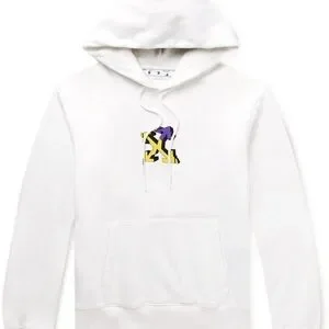 Off-White Printed Cotton-Jersey Hoodie in White sz M. New without tags . Off-White's clothing is never lacking distinctive motifs. A prime example, this hoodie is cut for a relaxed fit from cotton-jersey that's printed at the front with the brand's arrow emblem. It turns to reveal a graffiti-inspired pattern featuring a wizard at the reverse.