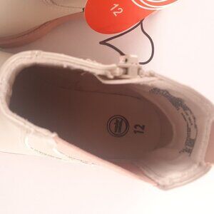 Girls Wonder Nation Ankle Boots Size 12 Cream & Pink Faux Leather Round Toe Side