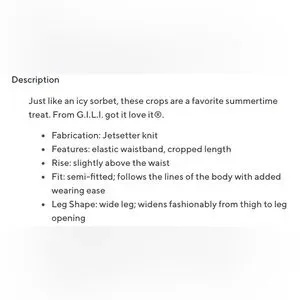 🚨Sale🚨!! New G.I.L.I Wide Leg Crop Pants Size Large