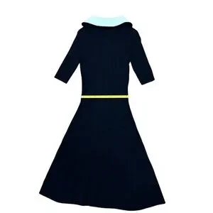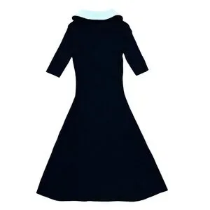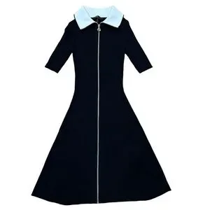 Stylish black dress with stretch rib and full front zipper. 3/4 sleeves and a sleek design. Perfect for any occasion.