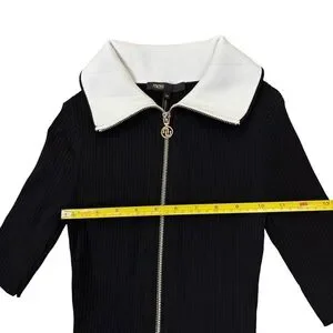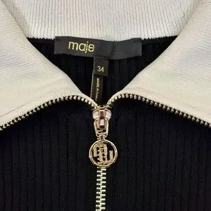 MAJE dress two tone Black Ribbed full gold zip contrast collar FR 34 US 0 XS