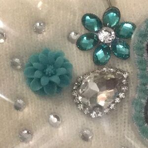 White and Silver Knit Cap with Decorative Patch and Rhinestones. Lowest offer