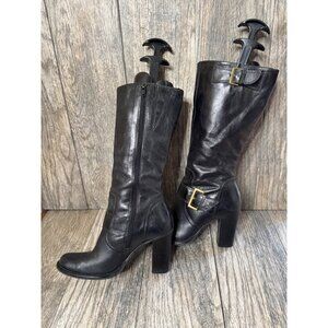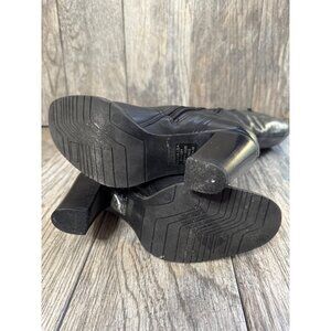 BP Julius-Lea Women Boots 7 Black Leather Pull Zip Up Mid Calf Heeled Shoes
