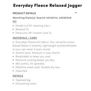 • Everyday Fleece knit fabric: Our versatile cotton-based fleece is stretchy, lightweight and breathable so you can wear it year-round.