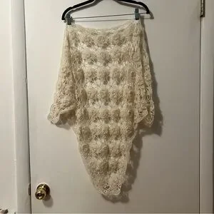 Beautiful ivory shawl with intricate floral crochet design. Perfect for adding charm to any outfit.