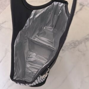 Stylish insulated wine tote with a houndstooth pattern. Features a convenient front pocket. Perfect for carrying wine from the store to your home or to take on a picnic.