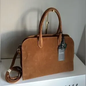 Viral Claudia Firenze Cognac Suede Leather Tote Satchel Bag NWT