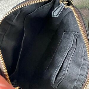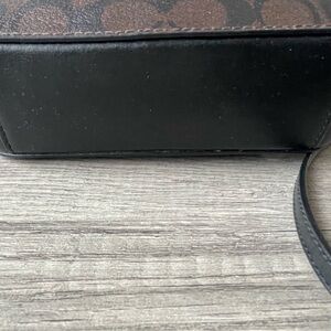 Coach Signature C Leather Brown & Black Cross Body bag Has adjustable strap, outside back pocket. Inside is fabric 2 CC holder and 1 side pocket. Used gently & in excellent condition.