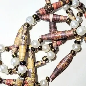 The paper beads have small bronze & white imitation pearl beads in between.