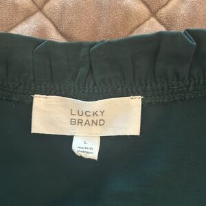 Lucky Brand Emerald Satin Dress with Sleeves. Like New Worn once. Sz L.