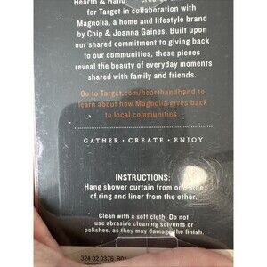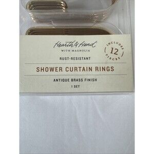 Hearth and Hand Magnolia Shower Curtain Stainless Steel Rings Set Gold Tone