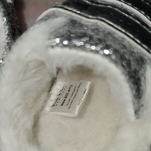 Adorable baby shoes with a sparkling silver finish. Features a soft, plush interior for comfort. Easy to wear with double straps.