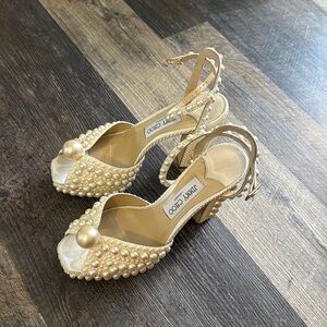 Excellent shape sacaria Platform 120 Jimmy choos wore for my ceremony then changed out so I didn’t damage. These shoes are eye catching!