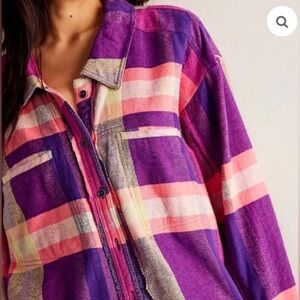 Brand New With Tags Free People We The Free So Long Summer Plaid Top in color Pink And Green Combo, size: Small