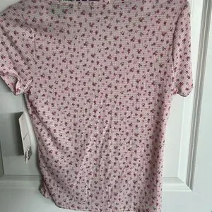 Charming floral wrap top. Soft fabric with a delicate pattern. Perfect for casual outings.