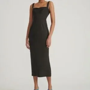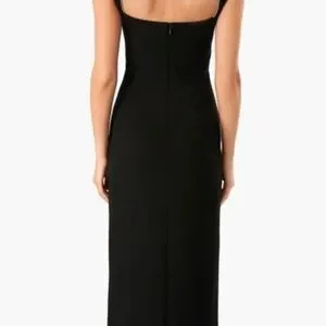 Color black An elegant style, the Rachel C Dress is a flattering midi that comes in an enchanting black color. The square neckline, wide shoulder straps, and fitted shape create a silhouette that is nothing short of classy. Pair with gold heels, drop earrings, and a clutch for an outfit that will grace any event. Square neckline Sleeveless Wide shoulder straps Invisible ack zip closure Straight silhouette Back slit Midi length Slight stretch Lined Material: 96% Polyester, 4% Spandex (outer), 92% Polyester, 8% Spandex (lining)