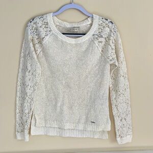 ABERCROMBIE & FITCH Cream Lace Sleeve Gold Fleck Pullover Sweater Size S