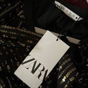 ZARA Black and Gold Sequin Dress Size Large - with tags!