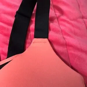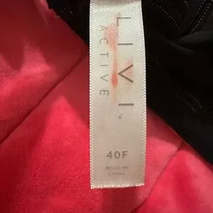 Livi Active Molded No Wire Sports Bra. Size 40F. Stylish sports bra with a peach hue. Features black accents. Comfortable and supportive design.