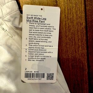 Lululemon Swift Mid-rise wide leg pants size 2 Bone color. Brand new with tags.