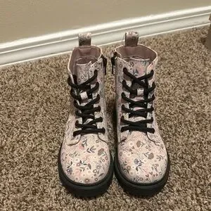 Stylish floral boots with lace-up design. Perfect for any casual outfit.